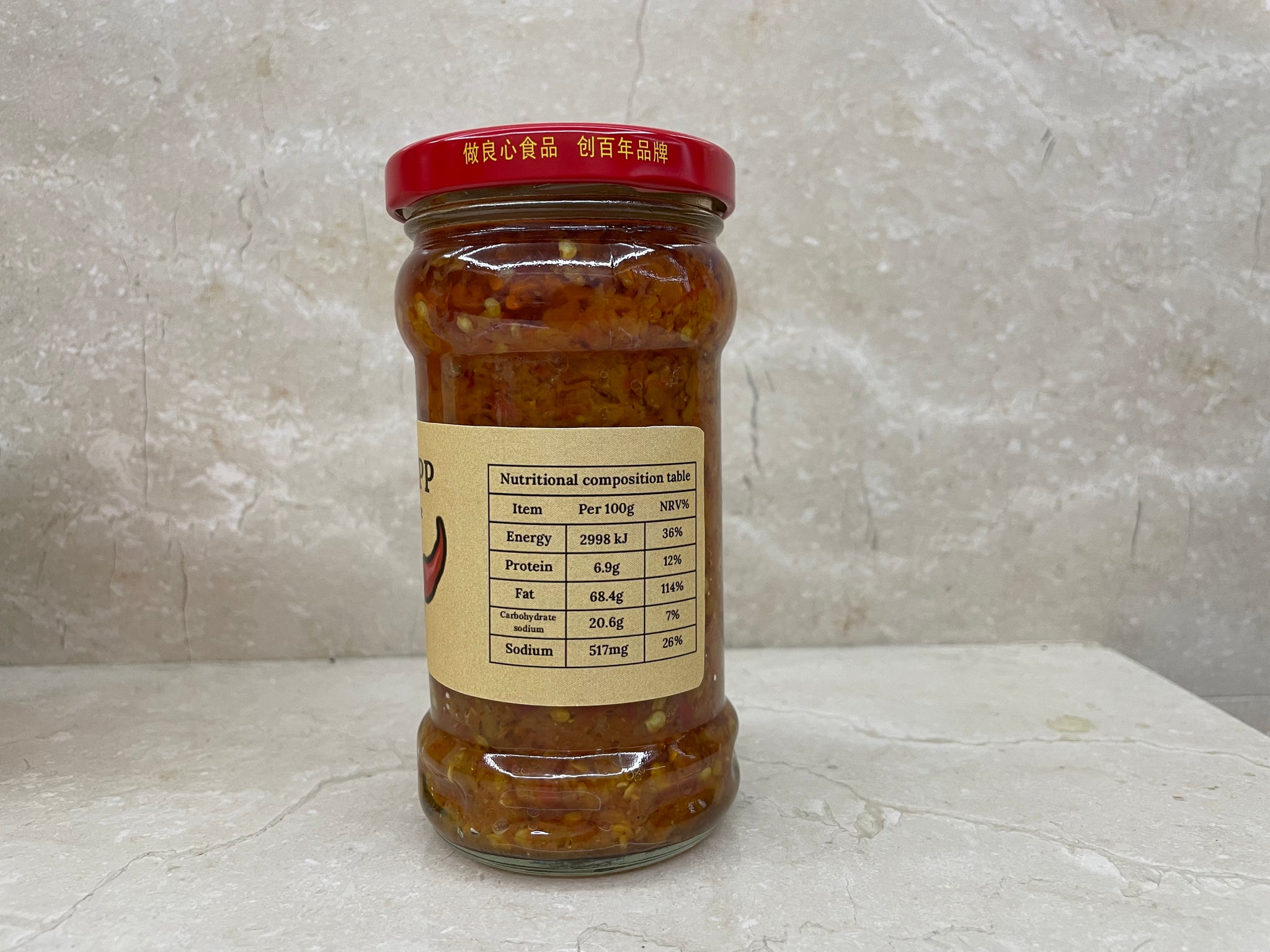Ingredient list: edible vegetable oil, chili pepper, garlic. Beef, bean drum, salt, sodium glutamate
