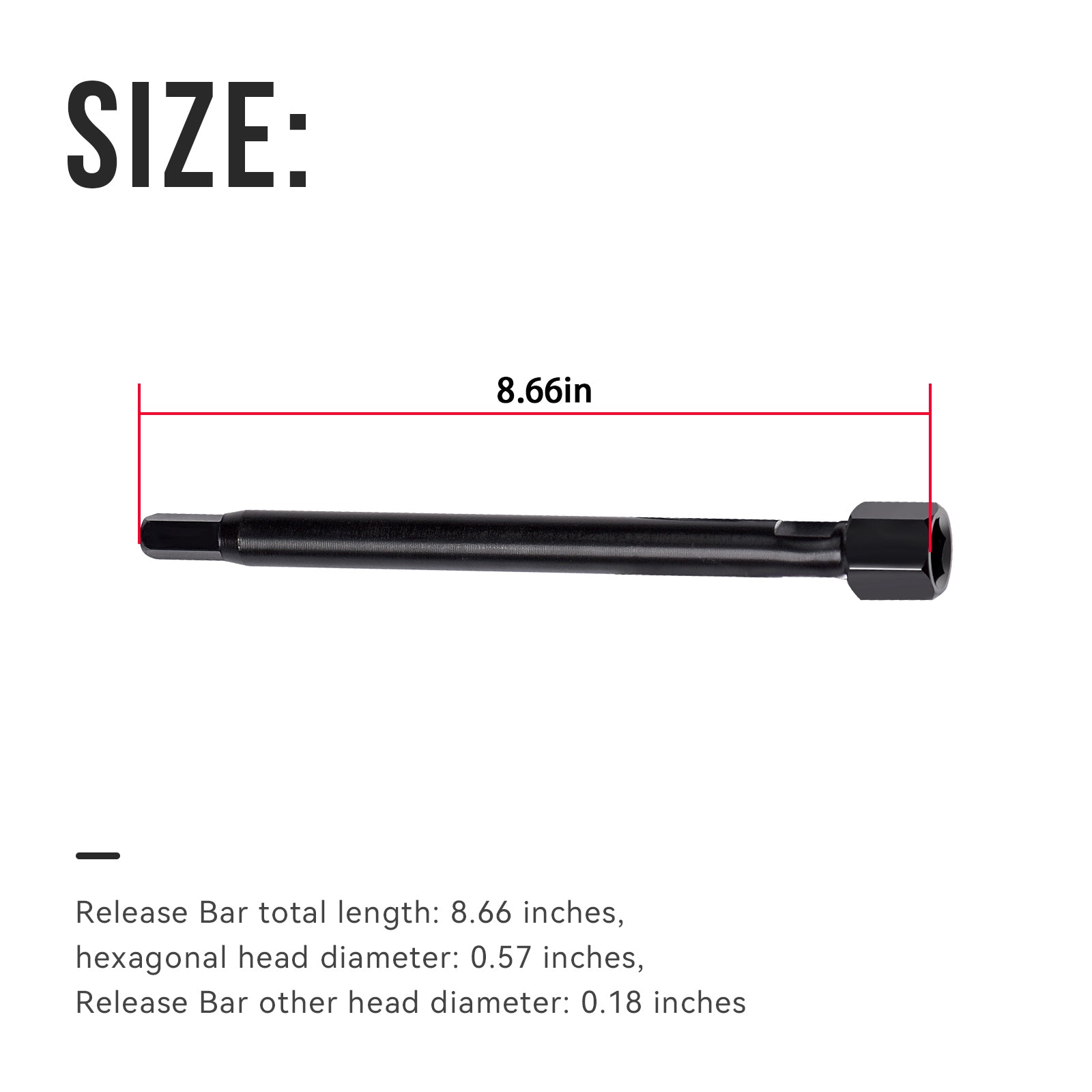- Size:Release Bar total length: 8.66 inches, hexagonal head diameter: 0.57 inches, Release Bar other head diameter: 0.18 inches,Please confirm that the size of the Release Bar is the size you need before placing an order